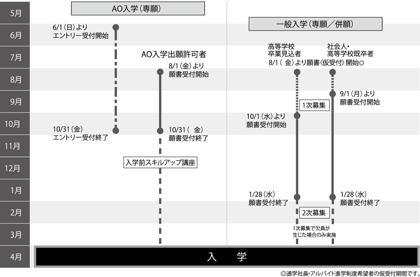 ※19:10まで授業を行う場合があります。授業時間割は入学後のオリエンテーション時に通知します。