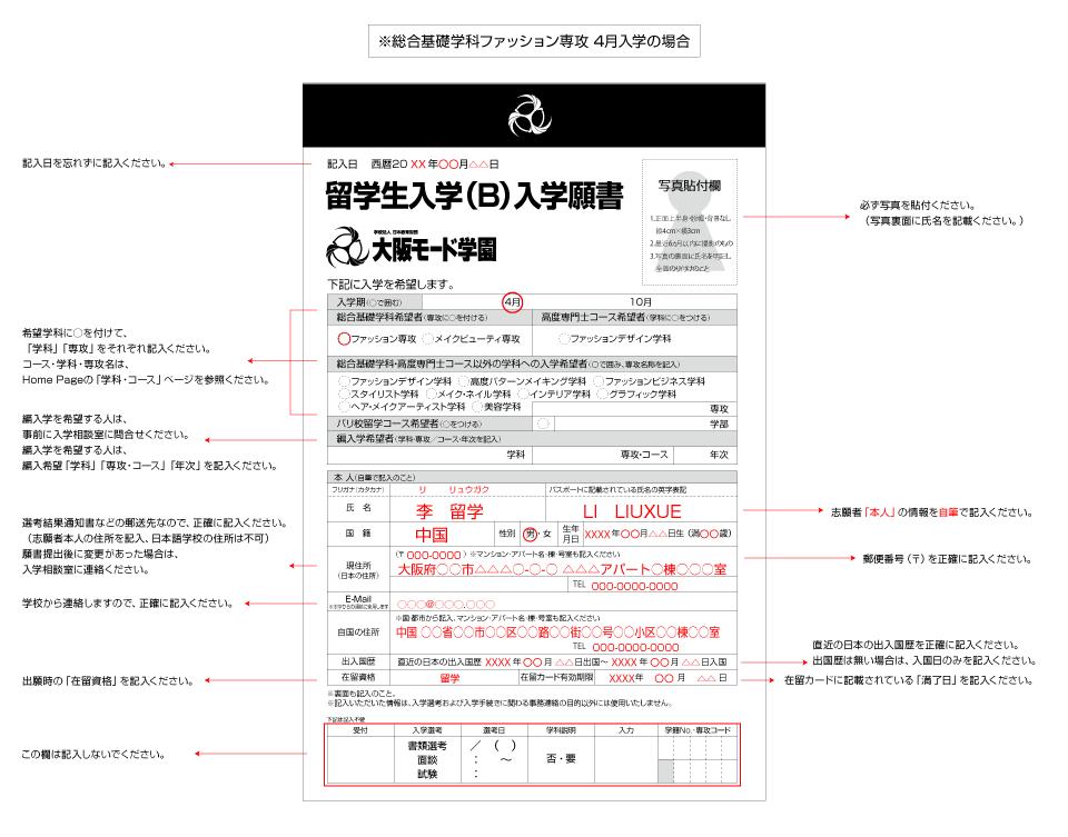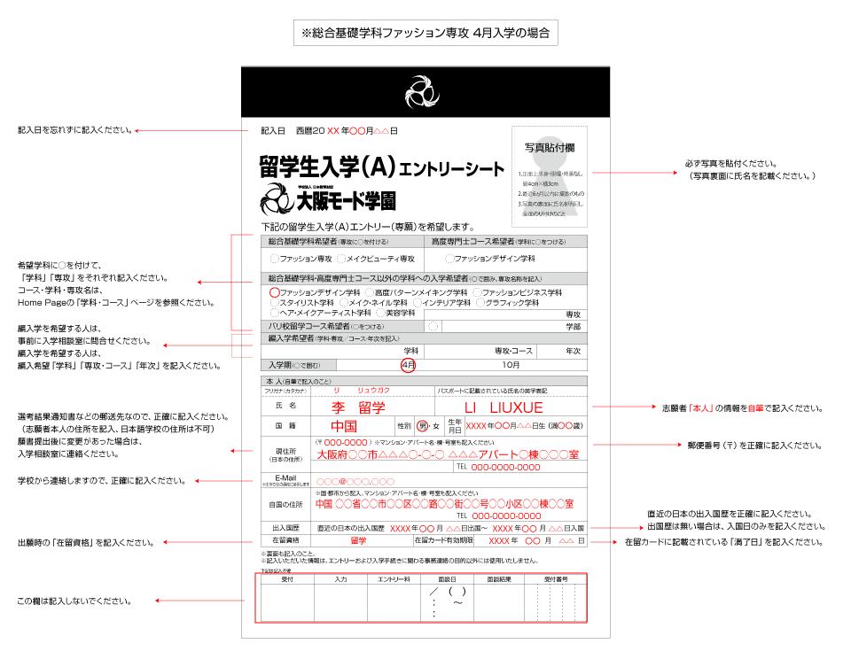 | 郵送の場合 | 【宛先】 〒530-0001 大阪市北区梅田3-3-2 大阪モード学園 入学相談室行 AO入学エントリーシート在中 |