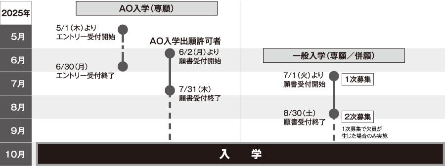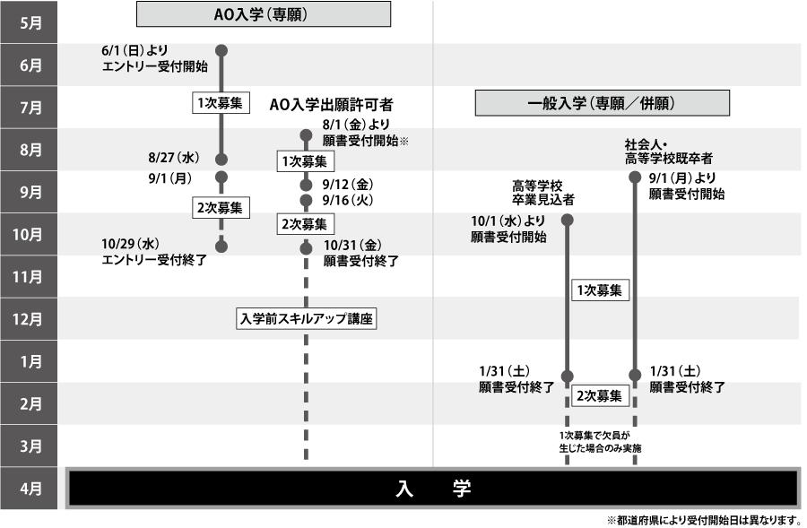 AO入学/一般入学で入学。その後、専門コースへの進級が可能。